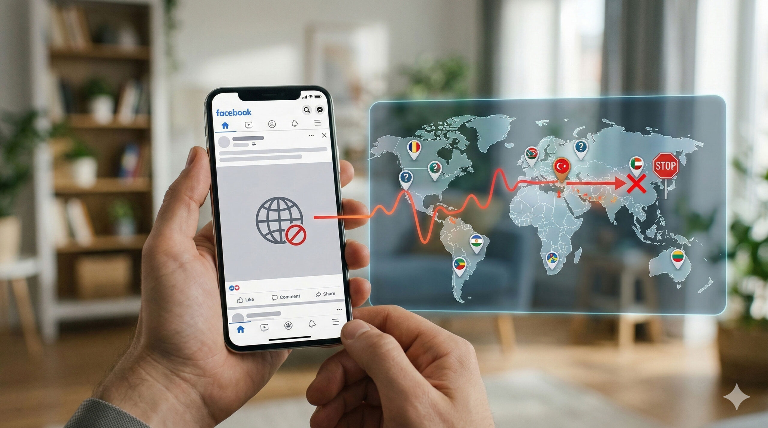 The Digital Border Error: Why Facebook Says “Content Isn’t Available in Your Region” and How to Fix IP GeoIP Mismatches! 🚫🗺️